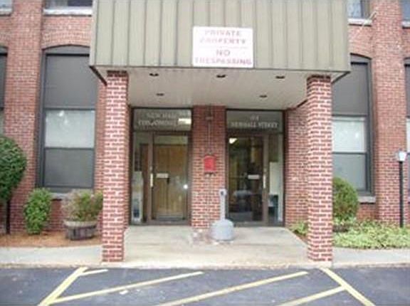 Nice top floor 2 BR, 1 BA unit at Newhall Condominium in South Lowell. Well maintained professionally managed complex. Off street assigned parking. Pull down attic stairway with plenty of private additional storage space. Laminate hardwood flooring in unit. NO PETS. Intercom / key FOB entry system. Easy access to major highways as well as public transportation. Close to commuter train station. Washer/dryer included.