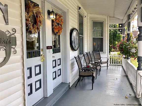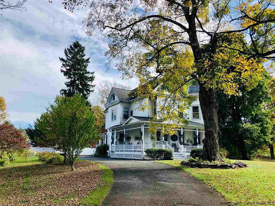 Enter the Stone Gated tree lined drive to this Charming 1890's Victorian located in the hamlet of Highland. Period details abound in this vintage classic including original molding and trim, stained glass windows, pocket doors & a grand winding staircase with all original detailing. Details include high ceilings, vintage lighting, alcoves, a formal dining room & cozy rear sun room. An elevator runs from the basement stopping at all 3 floors! Features also include wood floors-many original to the home, 3 fireplaces, municipal water and sewer,natural gas & ductless mini splits for air conditioning. An open design kitchen with island & side butler's pantry is perfect space for the cook! The large 3 car garage offers easily accessed bonus space above for future expansion. All sited on just over an acre tucked in from the street on a beautiful lot with circular drive, lovely lawn, garden area, privacy fence & plenty of parking too. Enjoy owning a wonderfully spacious and charming period Victorian---not many around!! Enjoy all the Hudson Valley has to offer from this property with easy access to historic sites in both Ulster and Dutchess Counties & quick access to the Walkway Over The Hudson & Metro North. Just 15 minutes to the world famous Culinary Institute and fine restaurants on both sides of the Hudson. Also located minutes to bustling Village of New Paltz, Shawangunk Ridge for hiking and climbing & NYS exit 18 thruway . This mint condition home is a Must See!