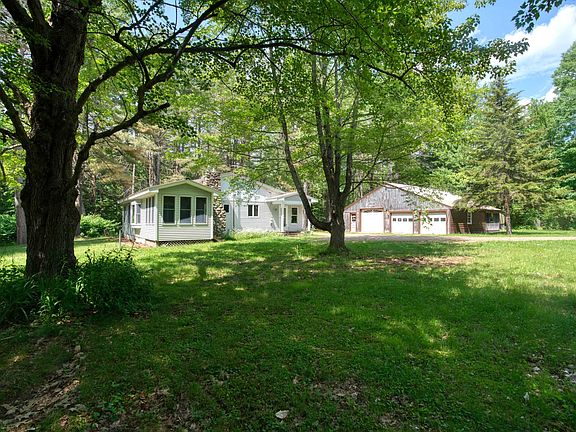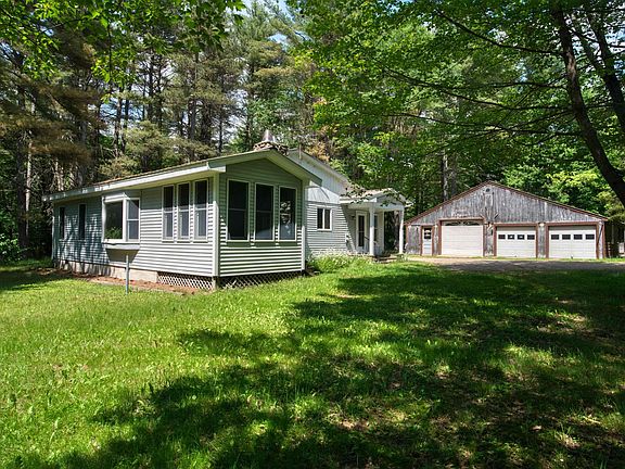 This 1945 Bungalow style one-level home is tucked away on its wooded 4.5 acres offering lots of privacy close to Hancock Village. In addition it has a three car garage complete with a operating lift and compressor for the mechanic in the family. Behind the garages is a woodshed and storage room for all your tools. Access is off a town road via a deeded right of way. You can easily walk to the Village library, Inn, Fiddlehead's Cafe, Hancock Market, Norway Pond for swimming and summer concerts at the bandstand on the common. Features include pine paneled walls and ceilings, fieldstone fireplace with wood stove, hardwood floors, two bedrooms, bath, kitchen/dining combination and three season porch overlooking the yard. All showings start at Open House on Saturday June 8th at 10am-1pm. All offers to be submitted before 5pm Monday June 10th.