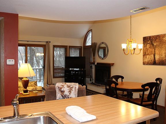 Charming Oak Glen Villa located a short distance from the South Golf Course and Winter Nordic Center. Offers year-round fun for everyone. Just inside the front door you will see the floor plan has a unique design with a bedroom and bath on that level, a balcony overlooking the main level with vaulted ceiling and wood-burning fireplace, living room, dining room, kitchen, and another bedroom and bath. Some updates include new appliances, furnace, A/C, window treatments, fireplace doors, mattress, smart TV and some new furniture. Currently in the Eagle Ridge Resort & Spa rental program and being sold totally turn key from pots and pans to all furnishings.