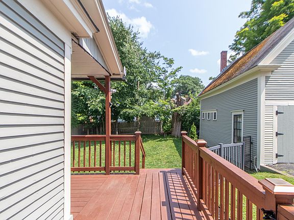 Step into history with this beautifully preserved 1915 Colonial-style home, situated on a private .18-acre lot. This charming property features a secluded enclosed backyard, perfect for peaceful relaxation, and an inviting front porch that welcomes you into a home rich in classic architecture. Inside, you are greeted by high ceilings and original hardwood flooring and moldings that capture the essence of its era. The home offers 3 bedrooms and 2 bathrooms, with the upstairs bathroom completely remodeled in January 2023. This home has been extensively updated to offer modern conveniences and efficiency. Key improvements include all new Harvey windows installed in September 2020, brand new roof, new kitchen and bathroom flooring with updated cabinets and new countertops. The back, covered deck was completely renovated in August 2022. Essential systems including electrical, oil tank, water heater, and basement insulation have all been replaced or updated within the last decade. Ideally located close to a variety of town amenities including schools, post office, North Country Hospital, easy access to I-91 and downtown Newport for nearby entertainment, including shops, dining options, and the scenic Lake Memphremagog. This home combines quiet residential living with easy access to city amenities.