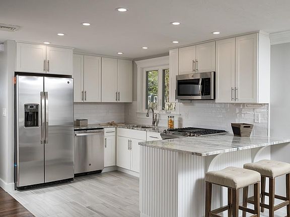- Kit Dscrp: Window(s) - Picture, Dining Area, Countertops - Stone/Granite/Solid, Cabinets - Upgraded, Flooring - Stone/Ceramic Tile, Stainless Steel Appliances, Open Floor Plan, Recessed Lighting, Remodeled, Gas Stove, Peninsula, Crown Molding, Beadboard, Decorative Molding
