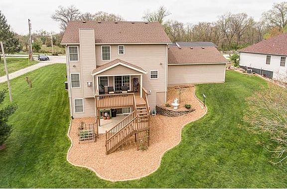 NEW PRICE! STUNNING! 3900+sqft. 5 bedroom 4 bath 3 car garage home. Finished walkout lower level on an absolutely GORGEOUS 1/2+acre PRIVATE tree lined LAKEVIEW lot. IMPRESSIVE two story with SOPHISTICATED DESIGNER touches. Main floor offers STYLISH kitchen with Hickory cabinets and crown molding, CAMBRIA quartz countertops, tile back splash, newer stainless steel KitchenAid Gallery series appliances, kitchen island, breakfast area with double doors leading to covered 14 x 14 deck, open floor plan, family room focal point breathtaking view of lake, gas fireplace custom mantel, custom 6 inch baseboards, Dining room with coffered ceiling, large Living room, Laundry area. Upper level four bedrooms, ceiling fans, Impressive Master suite with vaulted ceilings, two closets one walk-in and en-suite bath. Lower finished level boast a SPA bath with two person jetted tub, media room and fifth bedroom with walk-in closet. IMPECCABLY MAINTAINED! 20 Minutes to Scott Air force Base.