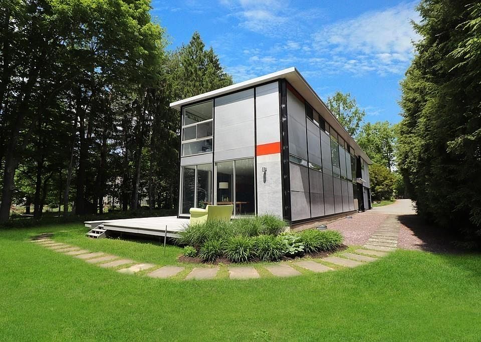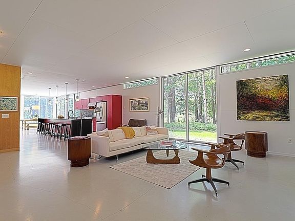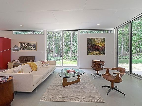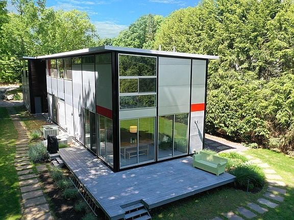 Featured in Boston Magazine in April 2007, this Dwell Home built by Empyrean is a FlatPak house designed by esteemed architect Charles Lazor. Meticulously built to an exacting standard in 2006, w/a primary focus on bringing the outdoors in, the picturesque setting & views are second to none. The intent of the design was to emphasize the beautiful vistas, however the architecture is the star! Radiant heat on all 3 floors, commercial grade, large scale aluminum windows throughout plus post & beam construction make for a loft-like home w/no load-bearing interior walls. Protected views offer a private paradise & the modern design is unmatched in today's market. Upon entry, the central living space offers a gallery-like experience for those who appreciate art. A combined living room, kitchen & dining room is outfitted w/high ceilings & flooded w/sunlight. The sprawling 2nd floor offers 4 bedrooms, 2 offices and additional informal space. Incomparable living for a true modern buyer!