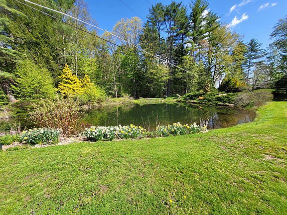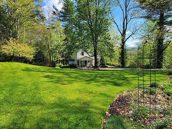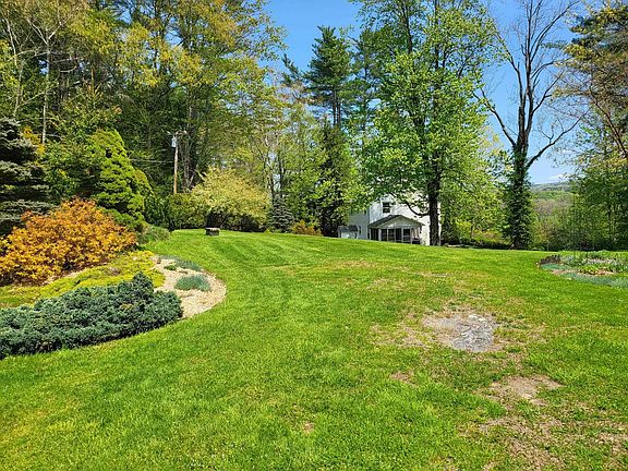 This handsome Putney colonial is located at the end of a town maintained road and includes over 6 acres of beautiful & private acres with formal gardens, speciman plantings, established vegetable beds, fruit & berry trees and gorgeous easterly views. There is a swimming pond, stream with gorge, paved driveway, barn with 2 car garage, water and overhead storage. The bird life is amazing and there are lovely stone walls and brick walkway. The interior is delightful and light filled----one enters the house via a screened porch and into a remodeled Kitchen with wainscotted cabinets, granite countertops, pantry cupboard, hardwood flooring and a mini split. There is a sweet Living Room (open to the Kitchen) with fireplace and Jotul wood stove. Adjacent is the Formal Dining Room. This level also provides a Powder Room and a Den with built-in bookshelves & cabinets and huge windows overlooking the wonderful views. The 2nd level provides a Large Landing off of which are 4 bedrooms (all with hardwood flooring), ample closet space and a Full Bath. There is a pull down ladder accessing a 3rd floor attic for additional storage. Full Basement. This is a great opportunity to acquire a wonderful Putney residence in a remarkable setting!!! Sale subject to sellers finding suitable housing. Delayed showings until Saturday 5/13 with Open House 10am-12pm.