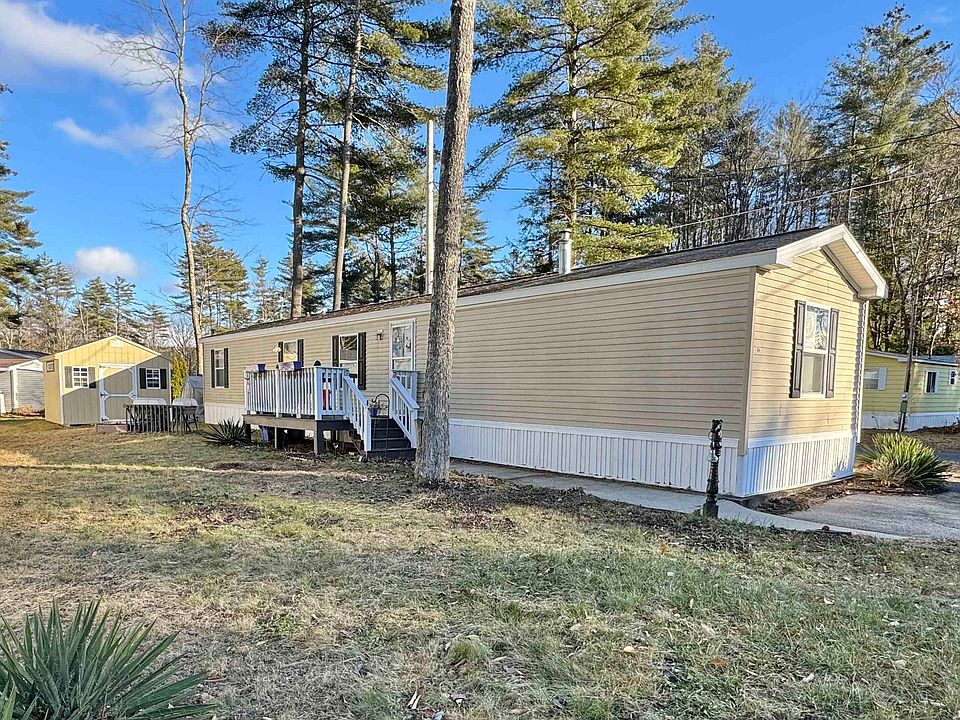 This home has been meticulously maintained, ensuring a move-in-ready experience for its new owners to enjoy this immaculate, 3-Bedroom / 2-Full Bath home nestled on a desirable corner lot centrally located Tanglewood Estates. Offering ample amount of garden space, this property invites you to enjoy the summer gardening or outdoor entertaining. The well-maintained exterior sets the tone for what awaits inside. The living room, kitchen/dining, offer a spacious open layout - effortlessly combines comfort and functionality. With the kitchen, dining, and living room situated in the heart of the residence, the flow is perfect for both daily living and entertaining. The bedrooms & full baths are separated on to either ends of the home, as are the 2 different entrances, for greater privacy if you need it. This home is designed in a perfect single-floor layout - great for parents who prefer privacy or space enough for visiting family or friends. Included in the sale is a custom built 12'x12' Amish-built shed (with electricity hook-up). Energy bills are reasonable in cost with lower electric bills than most homes, an entire house fan, & use of the efficient propane heat. Begin enjoying your cost-efficient, lower-maintenance lifestyle at this centrally-located Keene location soon. Make your appointment to view today! Park approval is required prior to ownership. (Credit and Background Check)