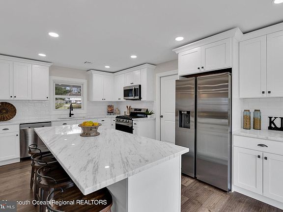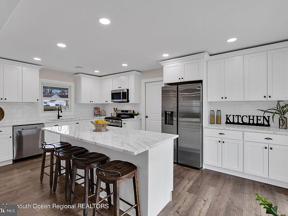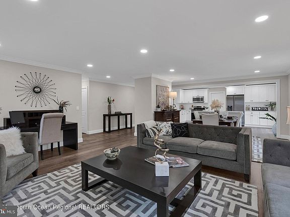 Totally remodeled Fantastic 3 Bedroom 2 Bath, 2 Car Garage Strathmore Ranch with open floor plan. If you love to cook, you'll love this kitchen offering plenty of cabinetry, large center island 4 stool granite counter , recessed lighting and stainless steel appliances with sliding door leading to outdoor patio. Entertain in your spacious dining and living room all accented with crown molding , recessed lighting and decorative molding throughout the home all complimented with luxury wood grain waterproof vinyl flooring.. Master Bedroom/Bath Suite finished in custom ceramic tiling and two additional bedrooms and guest share full bath with ceramic tiled tub surround. Years of care free maintenance with new roof, siding, HVAC and new asphalt driveway. Great commuter location close to parkway shopping, buses and Rt 34. Just move your furniture in and start enjoying your new home from day 1. Please Note: Grass has been enhanced and Bedrooms have been digitally staged for illustrative purposes only. immediate occupancy available.