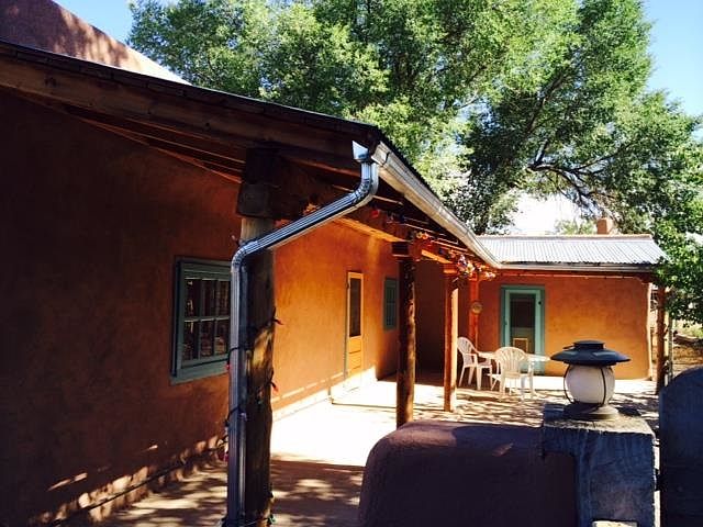 A traditional style adobe farmhouse with wonderful covered portal is ready for a new owner. Set back off the main road and surrounded by large trees, this cozy home shines with pride of ownership. There are two large bedrooms and a great den/office in addition to the living/dining/kitchen area. Radiant heat throughout and a sweet kitchen finish the inside. The large exterior portal adds lots of space and there is also a studio/workshop/storage building. Huge yard with room for gardens/chickens ....