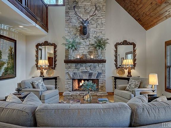This warm and inviting home has been updated and is spacious and generous with room for everyone. The great room boasts a floor to ceiling stone fireplace. The large master on the main level opens up to a wonderful covered screen sitting area with another stone fireplace. An open kitchen with stainless appliances and granite counters is adjacent to a large dining area and another sitting area. A powder room is also situated on the main level. Upstairs you have another bedroom and a separate bonus room/extra living space, along with a great loft area. This home contains tile baths, good closet space, and a spacious laundry/utility room. You'll enjoy sitting out on the wrap-around porch or cozying up to the firepit in back. There are tons of room to enjoy both the inside and out.
