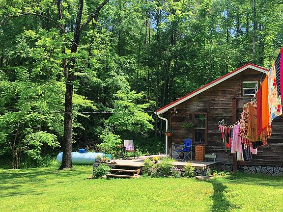 Priced to sell!!! 1br/1ba cabin in very private setting. This cabin has a spacious living/kitchen combo with fridge, stove and dishwasher. The upper loft would be great as additional sleeping quarters or for other activities. The bathroom has a tub/shower unit. There is a front and back porch/deck that overlooks the near by bubbling stream. This cottage has an extremely nice and quaint setting with pretty views of distant pasture lands and rolling green hills. Would make nice place to create garden and have critters. Has propane heat, comes fully furnished and is ready for easy living or as vacation spot. You even have cell phone signal out here! Priced to sell fast!