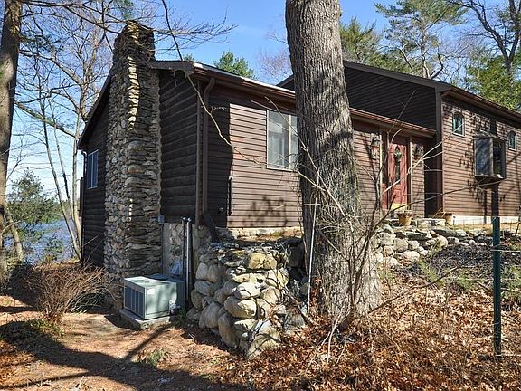 New price. Seller ready to go. **Direct waterfront home on fully recreational pond!!! Vacation year round at Home!! One of a kind custom home with water views on each level. Sunny and bright open floor plan. Kitchen is absolutely beautiful with marble flooring, center island, skylites, cathedral ceilings, granite counter tops, hickory cabinets, stained glass windows and exceptional woodworking. Kitchen opens to dining area with wet bar, marble flooring along with wall of windows for a breathtaking water view. Living room boast wide pine hardwood floors,coffered ceiling and a stone fireplace with a wood stove insert giving the home its warm cabin feel. Two large bedrooms on the ground floor. Master bedroom has 2 walk in closets. Full bath with Jacuzzi tub. C/A, C/V. Large 2nd floor loft with balcony could be used as 3rd bedroom. Additional unfinished room on ground level.