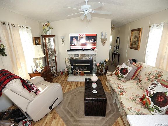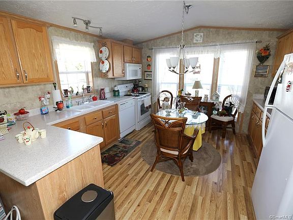 Are you looking to down size, but the tiny houses are too small. Come visit 34 Pine street. This beautiful well maintained mobile home will make you think your in paradise. Great covered deck for summer outdoor living, plenty of room for a small family gathering or just to hang out with friends for a night of relaxation. Don't be surprised when you walk in and spot those beautiful granite counter tops, light oak cabinets, composite wood flooring through out. Beautiful Bow window to let in the morning sunshine greet you. Great single floor living, say good bye to the basement washer and dryer, washer and dryer right out your bedroom door. Call for your private showing today. Land Lease applies and park approval needed.