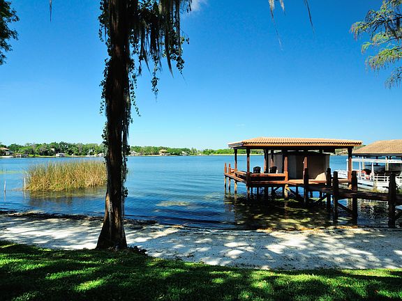 Enjoy spectacular sunsets each night and sparkling water vistas each day in this custom home recently updated with transitional design elements and finishes. Located on one of a few paved streets in Windermere, the property sits on an elevated lot on Bumby Point Peninsula with little traffic and is just a short walk from downtown Windermere with its Friday market, festivals, and parks. Designed for seamless indoor/outdoor family living with a spacious 5 bedroom, 6 bath floor plan also engineered for entertaining being equipped with 4 wet bars, game room, great room with fireplace, formal living and dining areas, upstairs theater/bonus room, outdoor summer kitchen, covered lanai and screened in pool with spa surrounded by tropical and lush landscaping. A sugar sand beach beckons from your backyard and a dock with lift will make it easy to enjoy the lakes. Superior details include travertine and wood floors, custom built-ins and cabinetry, coffered and detailed ceilings. Key to family life and crucial for entertaining is a centrally located kitchen with stainless appliances, breakfast bar, double ovens and separate butler pantry. A large first-floor master suite includes a spa-like bath and French doors to the lanai. A natural gas line operates the kitchen range, fireplaces, and heats the salt water pool and spa. House has had recent renovations and painted inside and out. This property offers the best of lakefront living, complete with a 25 ft. deep garage... so much that must be seen to be appreciated!