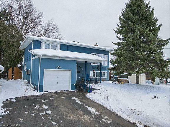 Welcome to 34 Portage! Located in the heart of West Ferris in North Bay. This spacious 4 bedroom 2 bathroom home has lots of room for growing or large families! With over 1700 sq ft of living space this home has the size and updates you've been looking for at a great price. Walking into the home you'll find a large finished front patio to enjoy your morning coffee. Heading inside you are welcomed by a spacious foyer with a large walk-in space great for coats boots and anything your kids will bring inside. The updated kitchen offers lots of counter space with 2 big windows for lots of natural light. Located off the kitchen is your dining room and living room with built in cabinets and shelves, a beautiful fish tank and a cozy gas fireplace. Along with the dining room are patio doors that access the back yard - great for barbecues. On the main floor you also find a beautiful 2 pc bathroom, huge laundry room/storage room as well as access to the oversized garage. The second level is home to a beautiful sitting room with a large picture window that sits in front of the large primary bedroom with built in shelving/closets and pocket doors. The other side of the second level hosts the 3 other spacious bedrooms for your kids and guests - as well as a beautifully updated 4 pc bath. There are lots of upgrades that this home has seen, including hardwood floors throughout most of the home, ceramic tile floors in the kitchen and bathrooms as well as new singles in 2018. With the fully fenced in yard as well as the hot tub and gazebo you are sure to find everything you're looking for in this stunning home.