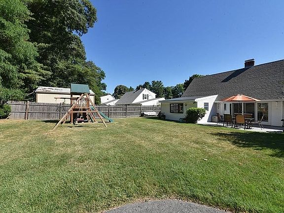 Lovely Pelham Cape with 2 year old granite kitchen with stacking W/D included, formal living room with updated laminate flooring & fireplace & picture window over looking yard and new patio, completely redone added family room off the back of home with vaulted ceiling and recess lighting, mint condition first floor bedrooms both with fans and good closet space and full tile bath. Master bedroom up with added lighting & walk in closet, baseboard hot water gas heat, unique property features 1 car garage attached PLUS massive 2 car garage with heat & separate electric with commercial size garage door/opener set nicely on property. Great patio and level yard space . . Walking distance to West Natick train station, Natick Parks & Rec building, Brown/Kennedy Schools/playground, easy access to highway and shopping, desirable neighborhood with 75+ home complete with sidewalks!! Home has storage galore!!!