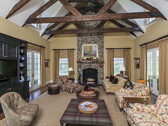 Bucks Cty Style Custom Built Colonial by Dowcon. Custom HWD Floors with exquisite Colonial millwork, raised panel wainscoting, 10 ceilings. Elegant gourmet custom kit with Subzero refrigerator and separate subzero refrigerator and freezer drawers and a Viking 6 burner range. This sunlit open flr plan boasts the 2-story Great rm , floor to ceiling firepl, all framing spectacular views of the private yard, gardens, terrace, pool with Pebble Tech surface and outdoor kitchen. Master bedroom suite offers 2 full baths and sitting rm. Bedrooms have walk-in closets and private baths. Temp controlled Wine rm features rack system suitable for the finest restaurant. . All this and more located on the Bernardsville Mountain.