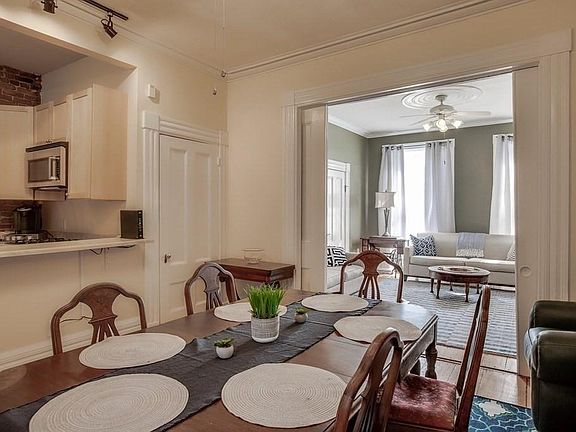 Conveniently placed in the desirable Eagle Hill neighborhood, this charming 2 bedroom condo stands out with hardwood floors, high ceilings and classic details. The large living room flows easily into the entertaining-friendly dining space that is located directly off of the fully applianced kitchen. This first floor unit is uniquely positioned high above the street level, which allows for an ample amount of natural light to brighten up the space. The common yard and laundry in the basement round out the list of attributes. Walkable to Maverick Train Station and a major bus line, this location makes commuting a breeze. Available 09/01. First month's rent, security deposit, broker fee due at lease signing.