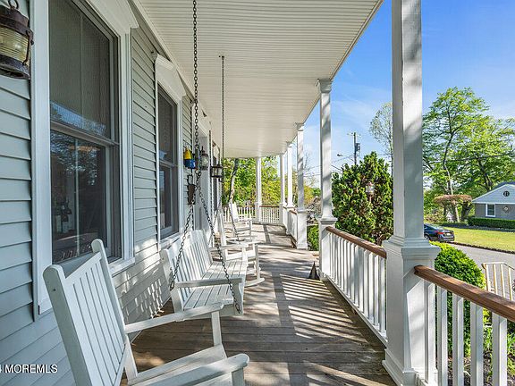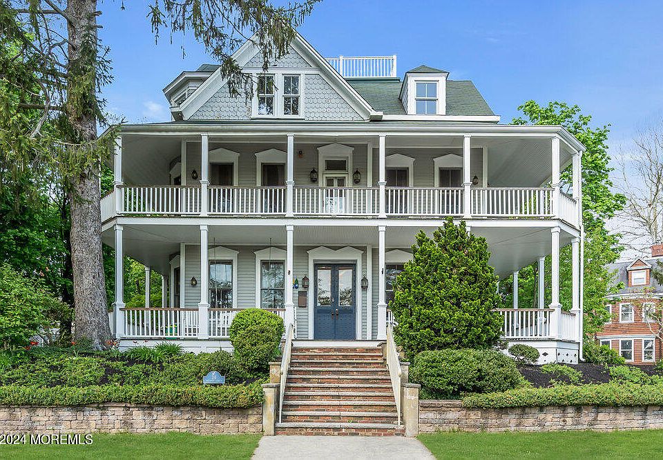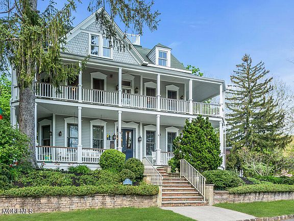 Situated high in the hills of Atlantic Highlands sits this magnificent Victorian home, boasting 8 bedrooms, 3.5 baths w/ 3 levels of living. Updated for modern living, but has not lost an ounce of its historic charm. 1st floor: Foyer leads to spacious dining, living & family rooms, each w/ high ceilings & gas fireplaces. Remodeled kitchen, perfect for entertainers, w/ s/s appliances, 2 ovens/sinks, pantry, peninsula w/ bar seating + built in breakfast nook. 1 half bath. Sun porch off kitchen opens to a nice size fully fenced back yard w/ outdoor shower. 2nd level: primary BR with walk in closet & en suite bath. 3 other guest BR + a full guest bath. 3rd Floor: HUGE open space perfect for playroom, fitness, library or office. 4 other BR + 3rd full bath. 2 levels of wrap around porches. This cherished family home of over 20 years has shared so much love w/ family & friends but is ready to be passed on to the next family. Perfect location, walkable to town, <1 mile to 1st Ave restaurants, shops & Seastreak Ferry.