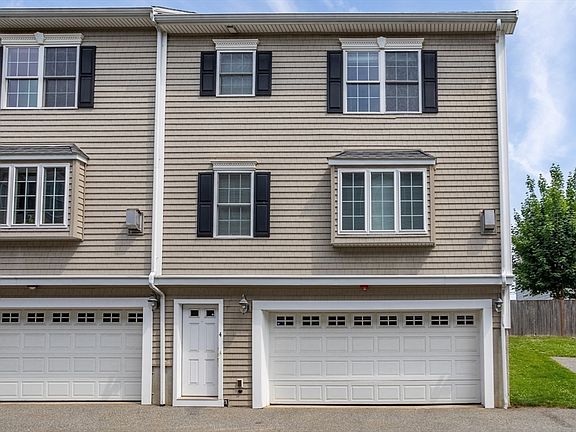 This well constructed townhouse offers modern living within close proximity to the hustle and bustle of Moody Street and the commuter rail. Privately sited at the end of the complex, this end-unit offers privacy as well as abundant sunlight through its multiple exposures. Park your car in the two-car garage and make your way up a flight of stairs into the main living level. The main level consists of a kitchen/dining area with a new kitchen island, stainless steel appliances, granite countertops, recessed lighting, a powder room and sliders that lead to a composite deck. Enter into the living room where you will discover a cozy gas fireplace, a bay window, recessed lighting and wood floors. The top floor has two generous sized bedrooms, in-unit W/D and a ceramic tiled bathroom. A pull down attic offers ample storage. Upgrades include a 2023 refrigerator, new bathroom vanity, light, mirror & fixtures. Recently painted walls, cabinets and trim. A terrific opportunity awaits your arrival.