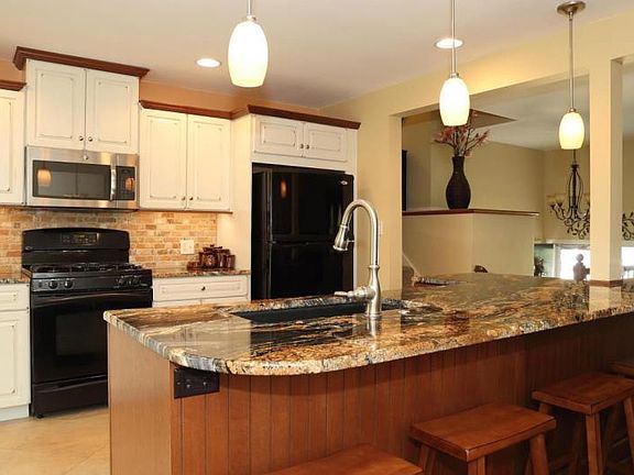 New Kraft Maid custom kitchen w/new appliances, granite counters w/breakfast bar. Lounge room w/custom bar and powder room. Newer gas boiler and central air. Large fenced yard. A must see!!!