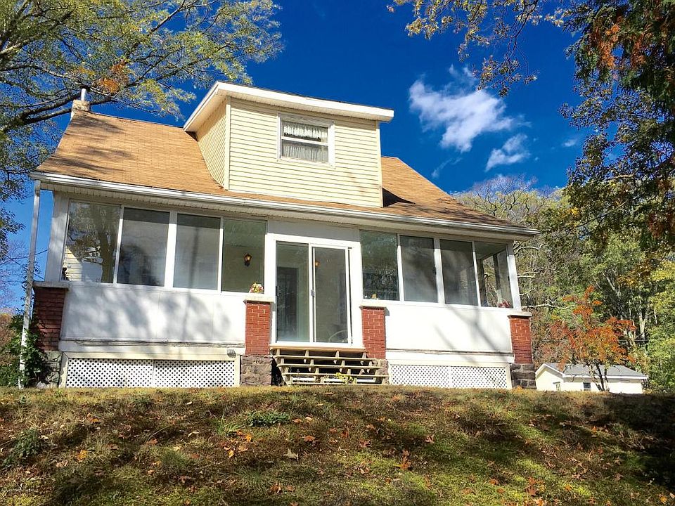 Quaint 2 story 3 BR, 1.5 BA cottage style home situated on 1.5 acres in a wooded setting. Home has lots of old fashioned charm with hardwood floors throughout (except kitchen & bathroom), large walk-in closets in all bedrooms and a very large three season porch with privacy and rustic views. Country living close to town! Also has large storage building behind garage (20'x12.5').Home sold ''as is''.