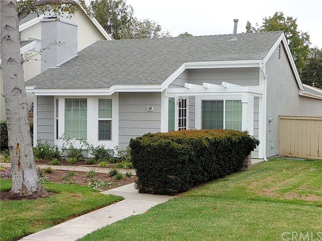 This is a charming single story detached home with 2 bedrooms and two baths with an attached 2 car garage and storage. The front door opens into a comfortable living room flooded with natural light, a cathedral ceiling and a cozy fireplace with a sliding glass door that opens to an outdoor patio. The home sits on a grassy interior lot with a walkway to the association club house, pool, tot lots and tennis court. The home is located in the Irvine coveted Cottage Homes Community of Woodbridge. The property is located within the Irvine Unified School District.