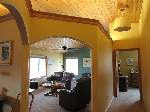 Not a pebble out of place on this 62.5 ac. spread! Views of the Kettle Mtn Range and Kettle River, this quality 1 story home comes with all the bells & whistles. Welcoming full length porch takes you right into the warm ambiance only knotty hemlock vaulted ceiling can create. Beautiful kitchen with large island, and plenty of dining space. Arched doorways add some elegance to the living room and hallway to 3 bedrooms and 2 baths. Efficient geothermal heating/cooling, automatic propane generator system for emergency back up power, finished oversized double car garage and a separate dream workshop. 2 fully fenced gardens ready to grow with raised beds, blueberries and much more. Includes original large pole barn, still in great shape and perfect for hay or livestock. Made up of 6 parcels.