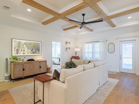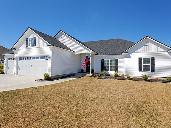 Discover this gorgeous and gently lived in 4-bedroom, 2-bathroom home, in Patriot's Point Subdivision, just 8 minutes north of Moody AFB. Nestled on a half-acre lot with no rear neighbors, this home offers space and beautiful craftsmanship. Step inside the foyer to an open-concept layout with a true dining room plus a breakfast area. The spacious and off set kitchen has beautiful granite countertops and peninsula island seating, a farmhouse sink with a disposal, stainless steel appliances, subway tile backsplash, and a walk-in pantry with built-in shelving. The great room is perfect featuring wood beams and an abundance of natural light. Gorgeous light and durable LVP flooring and moldings enhance the home's charm throughout. Designed with a functional split floor plan, the bright primary suite offers a barn door with his-and-her walk-in closets and a luxurious en-suite bathroom featuring granite double vanities, a soaking tub and a seamless glass walk-in shower. The three additional bedrooms offer ample space for family, guests or a home office. Carpet in all bedrooms. Spacious laundry room with storage cabinets and a built-in hall tree/mud bench off the garage entry. Enjoy the screened back porch plus a 10x16 open patio overlooking a large, fenced backyard with two access gates. Who loves a 3-car garage for ample storage and parking extra-long vehicles! A community pool is within walking distance. The quality of this 2022 construction is already in place for this popular floor plan making this home truly move-in ready. Don't miss this exceptional opportunity—schedule your private showing today! https://youtu.be/jlxLqRdqoC8