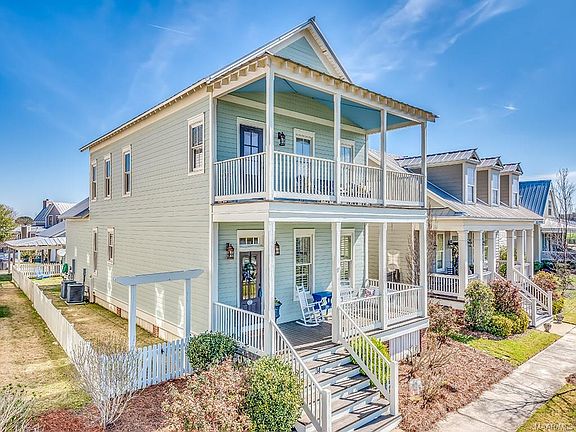 Front porch living at it's finest with lower level and upper level balcony overlooking Lake Sweet T at The Waters. Enjoy the beauty of sunrises and sunsets like never before. Gently rolling hillside between you and the lake give the eye some space to stretch out so you can truly relax and soak it all in. This old world classic features an incredibly open layout while still maintaining the charm of yesteryear. A large living room with tons of windows greets you at the front of the home upon entering and tucked off the dining is a spacious and well appointed kitchen with a huge work island. Just off the kitchen, step outside under a covered side porch and into the private feeling courtyard area. The master suite is at the rear of the home on the first floor and has great views of the backyard. Upstairs you'll find the most incredible den/bonus room at the front of the home with direct walk-out to the balcony for views like you can't even imagine. Two perfectly sized guest rooms and a full bath finish out the well designed second floor. Energy saving features of the construction of this home include spray foamed roof rafters and a tankless water heater. As they say in The Waters...."Vacation right at home". Don't miss your opportunity on this incredible home in The Waters!