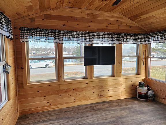 New in 2021 Amish built home sitting on a concrete slab! This home has a master bedroom with bath and also has a large walk in closet and laundry room. The front of the home has a sun room overlooking the Piscataquis River. Home is sitting on a .68 Acre corner lot with public water and sewer. Located 1 mile from I-95 makes an easy commute to the Bangor area. Perfect retirement home or great starter home.