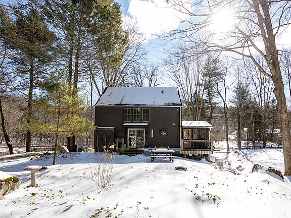 Dogwood is a magical property set on 4.43 acres.A roaring brook, orchard, large field and woods make up this wonderfully composed parcel of land. The barn dates to 1850 and was exceptionally restored. Entering the barn, you have soaring ceilings, a wall of windows, and an impressive mix of painted white walls mixed in with natural wood.The handsomely mounted wood stove creates a natural warmth and is the centerpiece of the Great room.To the left of the entry is a mud room, 1/2 bath with slate floor tile and a classic porcelain utility sink. The Great room is broken up into a large seating area and dining area with plenty of room for farm to table meals. The kitchen has painted wood cabinets/ concrete counters, s/s appliances, wainscoting and open shelving. Wood floors throughout, exposed beams and paneled ceilings. The porch is heated for three season use and over looks the orchard and field.A deck for grilling is right off the porch for ease of entertaining. The upper level bedroom is ensuite and overlooks the great room. There is also a gallery on the upper level.A full basement with walk out french doors to a stone terrace perfect for a studio or gym.Dogwood is filled with surprises outside including trails, gardens, and uninterrupted spots to just sit and relax.