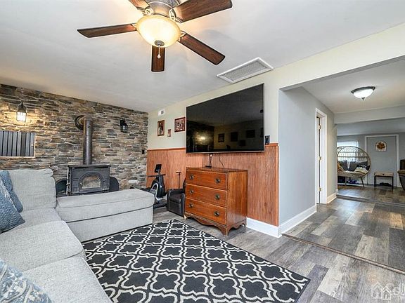 Welcome to River Road! This spacious 5 Bed 2 Bath Brick Front BiLevel on sprawling open lot backs to peaceful, private wooded views along the Musconetcong River. Plenty of space to relax, fish, build, play, entertain and so much more! The interior features an open Living/Dining combo with newer flrs, built-in bench seating, chair rail molding and vaulted ceiling that truly opens up the space! Large Eat-in-Kitchen offers sleek SS Appliances, gorgeous granite counters, center island, recessed lighting, crown molding and delightful passthrough window into the Dining area. Family rm holds a cozy WB stove with stone accent wall. Home Office and versatile Rec rm is extra convenient! Updated Full Bath with glass stall shower + Laundry rm rounds out the main lvl. Upstairs, the 2nd Full Bath with dual sinks + 5 (yes, 5!!) generously sized Bedrooms with HW flrs. Plenty of closet storage throughout. Huge Backyard offers a Patio with Pergola, Swingset, storage shed, Fire Pit, direct River access and more! Oversized Detached Garage, ample parking, the list goes on! *Showings begin Sat 5/6*