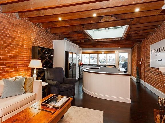 Incredibly special penthouse duplex home available for rent on the Flat of the Hill with views and sun in every direction. Amazing Beacon Hill location one block from Charles Street and just two blocks from the Public Garden. Top floor features exposed brick, gorgeous beam ceiling, huge six pane skylight and a wide open living/kitchen space with working fireplace primefor entertaining. Chefs kitchen with expansive granite counter space and stainless steel appliances.Sunny private rear deck off of the living space with unobstructed views extending across Back Bay all the way to the Citgo sign. Two generous bedrooms with hardwood floors, large windows, & bountiful closet space on the first level. Crisp newly renovated spa-like bathroom with heated floors. High ceilings throughout, central air conditioning, in-unit washer/dryer. Easy access to public transportation. A sunny, historic Beacon Hill home updated to today's standards with private outdoor space in the best location in Boston.
