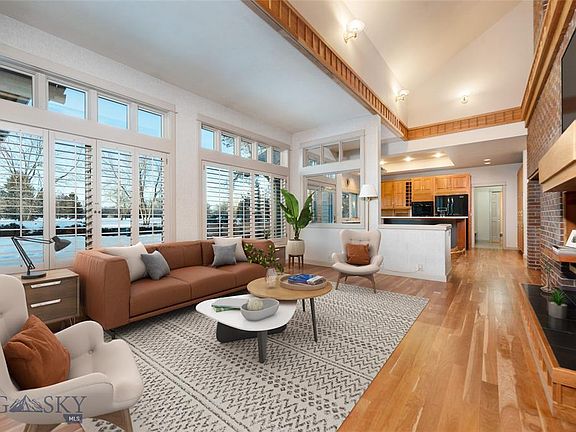 This Locati designed home on the #1 hole of Riverside Country Club has a wonderful backyard setting for you and your guests to enjoy. Take in the mature landscaping and south facing views while relaxing on the patio during those long summer evenings. Inside you will find cherry flooring and cabinets with classic brick styling on the centerpiece fireplace for the cold winter nights. Find plenty of space inside with formal living room, dining area, sitting area, and comfortable kitchen with large center island. Master bedroom with sunroom, guest bedroom with en-suite bathroom, 3rd bedroom, and additonal office/bedroom round out the flow of this well layed out home. Two car garage with an extra attached 12x12 heated room could be used as a shop, office, gym, etc...let your mind be creative here! Great proximity to shopping, downtown Bozeman, golf course, skiing, trails, and fishing. This home fits the Bozeman lifestyle everyone is looking for!(home is virtually staged)