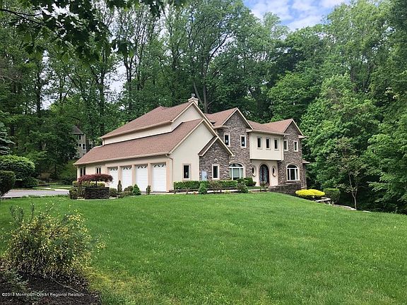 Builders own custom home surrounded by the privacy of Holmdel Park. Attention to detail and luxuries of only the finest selections adorn this Stately Manor. Custom Kitchen, moulding, 10 zone radiant heat, wine cellar, 12 seat movie theater, in law suite/maids quarters, 4 car heated garage, full walk out finished basement, wet bars, custom surround sound, mahogany doors, and so much more all in one of the most prestigious areas of Holmdel. 5,596 sq ft plus a finished 2798 sq ft. basement with 11 ft ceilings boasting a full 8,300 sq ft of gorgeous finished living space.