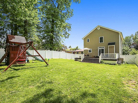 Built in 2014, this beautiful colonial home has it all! The open concept first floor includes a gourmet kitchen with granite counters, stainless steel appliances & center island, dining area, large living room w/gas fireplace, mud room, & sliders to the deck & fully fenced, serene backyard - swing set included! On the second floor there are 4 bedrooms including a master with vaulted ceiling & walk in closet, master bath, hall bath & laundry room. Behind the barn door in the fully finished basement you'll find an office space with a wet bar that can be used as a guest space. The basement also has a recreation room, large windows & full bath. Features include hardwood floors on 1st & 2nd floors, central air, central vacuum oversized garage. Located close (0.6mi) to town, train, shops, recreation & schools.