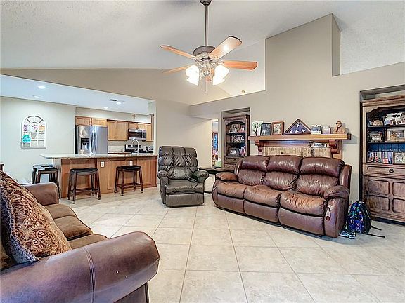 Beautifully remodeled split plan pool home in DeBary. You need not look any further. Remodeled in 2016, the house has all new 20/20 tiles floors in Den, Living, Dining, and Kitchen with Wood Floors in all bedrooms. Kitchen appliances were purchased in 2016, Frigidaire Gallery Collection, all Stainless Steel. Exotic Granite in Kitchen with Natural Cherry Wood Cabinet uppers and drawer lowers, all easy close. Extra deep barn kitchen sink with touchless faucet. Living room has double sided fireplace and connections for surround sound. Master bath is the shower of all showers, including safety rails, both an overhead rain shower and a separate hand held shower head. You pick, one or both. Exotic Granite in Master Bath with Porcelain sinks. Second bath has also been remodeled. New a/c unit in 2015, new windows, new front door. Vinyl Fence around back yard for privacy to swim in the screened in pool. Newer Septic Tank and Drain field installed in 2016. But wait...seller has existing home warranty which is good until April 2025.