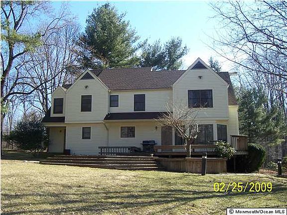 SHOWINGS BEGIN SATURDAY, 3/15. Amazing opportunity! Bring your vision and imagination to transform this custom-built single-family Holmdel home to its former glory! This 1.25-acre property set in one of Monmouth County's most coveted towns provides tremendous potential for the savvy buyer or investor. Features include 4 bedrooms, 2.5 baths, soaring ceilings with exposed wood beams, a wood burning stone fireplace, oversize 2 car garage, private rear deck, along with award-winning Holmdel schools. Great location with convenient access to Bell Works, PNC Arts Center, GSP & NYC transportation. Please be advised this home is being sold STRICTLY ''AS-IS''.