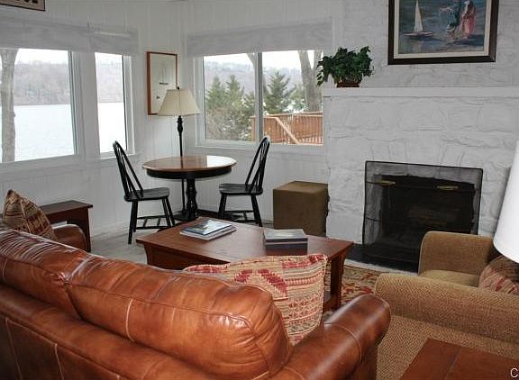 Summer Rental $7,500 per month. Prime Lake Candlewood Waterfront! Charming lake cottage in Candlewood Shores with amazing wide western facing lake views, level lawn to lake and large deck. Formerly owned by John Freida. Vaulted ceiling screened -in porch with 3 sides of expansive lake views. Cozy living room also with lake views. Pool table & poker table in vaulted upper level game room. Updated bathroom. Central air conditioned main level. Washer and dryer. Propane grill. New outdoor shower. Dock included, so bring your boat. Less than 75 min. to NYC. Enjoy your summer on the lake..