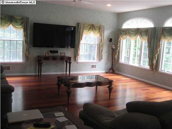 Immaculate 4200 sf custom home, full brick front, gorgeous great room w/ three triple palladium windows. Huge eat in kitchen with center island and corian c-tops. 42'' Maple cabinets, sliders leading to deck. Beautiful hardwood floors throughout. Spacious master suite w/ sitting rm. Nicely finished basement with half bathroom with many options for use of finished area. Home boasts privacy and is located in a prestigious development. Many upgrades throughout, no disappointment.