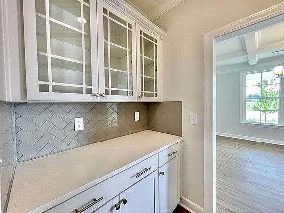 Sweet Southern Style in this charming Robinson! Coveted cul-de-sac homesite with unobstructed pond views. Extra deep rocking chair front porch and 2nd floor balcony. Open concept designed for entertaining. Formal Dining with all the details; coffered ceiling, wainscoting. Pass-thru Butlers Pantry. Dream Kitchen with AMAZING counter/cabinet space! Wall-ovens, gas cooktop, designer hood vent, quartz counters, pot-filler cater to your inner chef! Primary suite on main. 4 secondary bedrooms up. Welcome home!