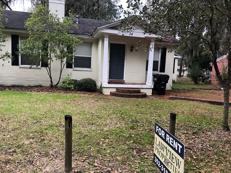Steps from UF Levin College of Law and Bus Route. You'll have plenty of room in this spacious 2200 sq ft 3 BR / 2 BA Home. Enjoy the Large open floor plan with updated Kitchen, Great Room, Florida Room, Recreation Room, and Laundry Room. The original wood floors with cabinet cut ins add to the charm of this vintage home. Convenient off-street parking. Beautiful backyard with Live Oak and lawn maintenance included.