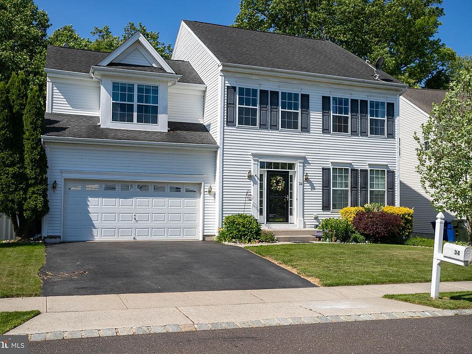 Now is your chance to live in the warm, inviting, friendly community of Grande at Crystal Lake in Bordentown. This neighborhood has great amenities with parks, playgrounds, sports courts, clubhouse and pool. This lovely northeast facing home features 4 bedrooms and 2.5 bathrooms. The 2-story foyer invites you in, natural oak hardwood floors, recessed lighting, stunning dental molding and trim. The half bath is conveniently located off of the foyer, away from the living spaces. The expansive space, adjacent to the foyer, is ideal for large gatherings, as it can easily accommodate a large dining room set as well as a nice sitting area. Access to the 2-car garage is through the laundry room. You will thoroughly enjoy the winter months. Cozy up to the gas fireplace, dim the recess lights and watch the snow fall over Crystal Lake. In the summer months you can dine and entertain on the massive, 20x26, deck in a private setting with lawn sprinklers as the preserved area of trees will be full of lush green leaves. The open kitchen includes upgraded 42” cabinets, dark appliances including a newer (2021) gas 5 burner stove that compliments the granite countertops flawlessly. You will be very pleased with the amount of natural light that comes in with a large bay window in the eat-in space. On the second floor, the master bedroom is spacious with a generously-sized walk-in closet and an ensuite with a double sink vanity, deep soaking tub, and stall shower. Completing this level are 3 additional bedrooms that share a full hallway bath and a linen closet in this level. The basement is fully finished with a vast amount of space and home theater equipped providing so many options for rec space and storage. Recent major replacements include: Newly painted deck in 2022, microwave, gas stove, hot water heater in 2021, furnace, garage door motor and sump pump in 2019, washer & dryer in 2018 and the air conditioner in 2015. This community is located off of Rt 130 so it makes commuting to any other major roadways such as Rt. 206, I-295 and NJTP very easy! Make a showing appointment today!
