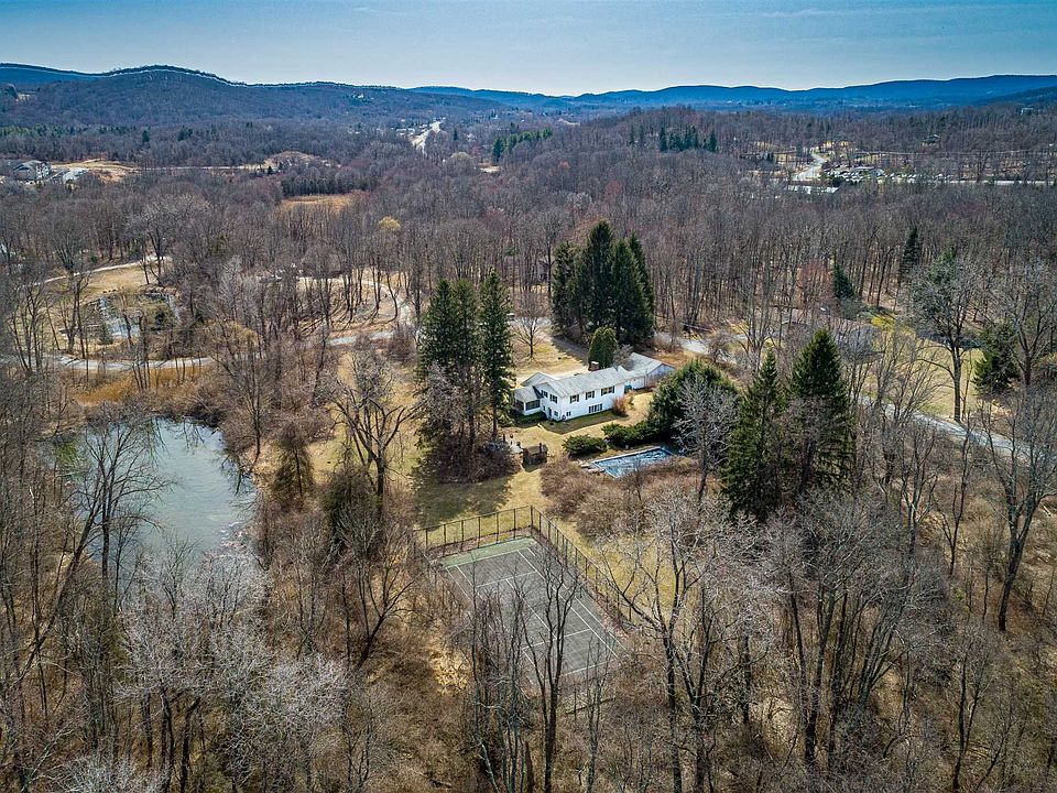 Virtual tour available: A very special offering awaits with this sprawling 4 bedroom, 3 1/2 bath, 2,514 SF home set on 7.53 acres on Quaker Hill. The circular driveway sets the home a nice distance from the road. Explore the enchanting grounds to find hidden treasures at every turn: a large pond, in-ground pool and tennis court, all connected with trails and framed in the privacy of woodlands. Over the past 62 years, just one family has owned this special home and it is now ready for you to write its next chapter with your fresh energy and vision. The first floor offers a formal living room with fireplace, formal dining room, custom Hunt Country cabinetry in the kitchen, family room, bedroom & powder room. Upstairs, a master bedroom and bath with two additional bedrooms & full bath. Downstairs, 600 SF rec room with fireplace & full bath complete the package. Make this your staycation full time or on the weekends. Country retreat minutes to the village of Pawling and 90 minutes to NYC by train or car. Be sure to take a virtual walk through with our virtual tour.