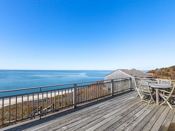 Located directly on Cape Cod Bay, this Cobb Farm waterfront contemporary is on the market for the first time in over 40 years!The house is beautifully sited high on its lot with sweeping views, and Provincetown is off in the distance like a glittering necklace.Windows surround the sunken Great Room with a wood-burning fireplace and cathedral ceiling, all opening onto a deck running the width of the house. Up one step to the dining area with the kitchen situated towards the front and both with beautiful views of the bay.The primary bedroom with its spacious bath is on the same level as the Great Room. It, too, opens onto the bayside deck. There are two more bedrooms on this floor that share a full bath.The first floor has a large family room easily accessed from the driveway, and the 4th. bedroom, a full bath, and a storage room are just down the hall.The one-car garage opens into the lower hall.A private staircase leads you down the 70-foot-high dune to your private beach. 34 Sandpiper Road is a slice of South Truro heaven any time of the year! Please call for an appointment.