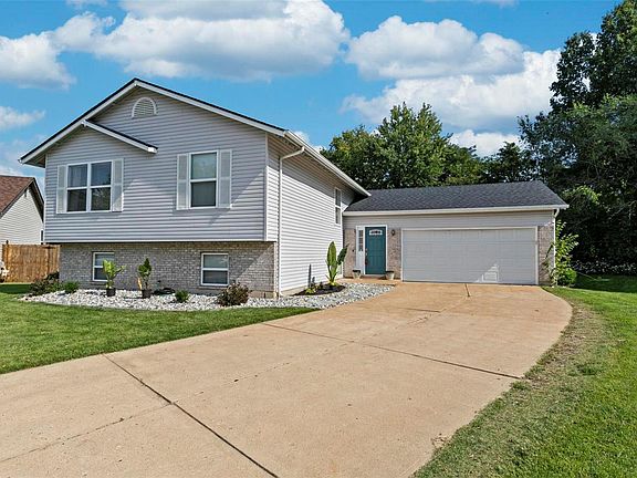 Welcome to your new home! Four beds located on a premium over-sized cul-de-sac lot backing to a private tree line. Located in highly desirable St. Charles area! Venture into this beautifully updated home and be greeted with neutral gray paint tones throughout, wide planked laminate wood flooring on the M level and most of the LL, stainless steel appliances and much more. Two Master suites including whirlpool tub and separate shower in LL. Open floor plan on main level with vaulted great room and dining/kitchen area with breakfast bar. LL family room with fireplace and tons of natural light. Step out to the deck and relax in the private fenced backyard that backs to common ground. Great for backyard BBQ and entertaining guest. Located close to dining, shopping, and highway access. Within high rated Francis Howell School District! Newly updates: roof (3 months), kitchen countertops, privacy fence, and carpet. Home has a leased alarm system & is transferable. Hurry and visit; wont last!!
