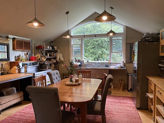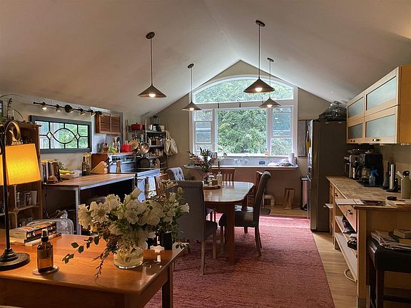 Tucked away off the road is this beautifully remodeled 1950's 2 bedroom Ranch on 5.6 park-like acres. The property is private and secluded, but also convenient to shopping and schools. This cottage-like Ranch and attached 2 car garage features open living with cathedral ceilings, a Cooks Kitchen with restaurant style stainless steel kitchen sink/table, Living room, family room with wood stove for those chilly spring nights and a loft in the 2nd bedroom. Not much else to do but Move In and Enjoy! Security system is leased.