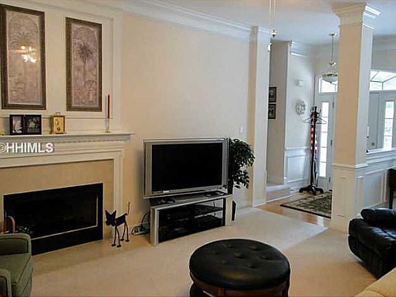 Immaculate light & bright "Platinum" Jupiter Model-open & airy floor plan has 4BR/3BA located at the end of a cul-de-sac. Great room offers gas FP accented with marble surround, volume ceilings, tray & crown moldings & fully networked E-house wiring. Custom paint & Hunter Douglas window shades throughout. Gourmet kitchen has Corian countertops & sink, chromatic tile, custom cabinets, recessed lights, spacious breakfast bar, pantry, etc. all with peaceful golf/landscape views. Good bedroom separation, oversized garage with utility sink and workbench, large covered screen porch. Well maintained. (909113)