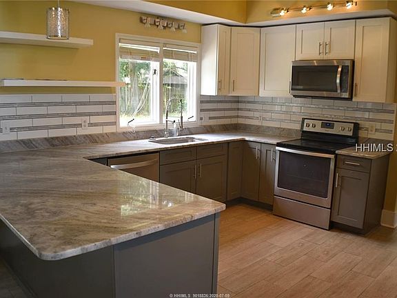 Enjoy beautiful sunset over the Calibogue sound at the Point Comfort private community Park. Park has community boat dock, boat ramp, park & pavilion. The neighborhood has community events like oyster roasts,shrimp boils & bike parades. This home is a just 3 homes away from the community park area! Community has low POA fee $500 per year, allows boats & motor cycles! Boaters, kayakers and paddle boarders love this neighborhood! Upgrades to home include kitchen cabinets, granite countertops, stainless steel appliances, tiled flooring main living areas & updated bathrooms. Owner will consider lease option to purchase or small second.