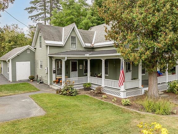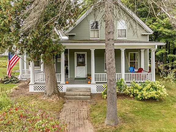 Timeless charm meets modern comfort in this beautifully maintained 1890s home. Original details shine throughout, including the graceful wooden staircase, raised panel doors, oversized windows, tall ceilings, crown molding, farmhouse baseboards, and a built-in china cabinet that anchors the dining room. Thoughtful updates include a refreshed kitchen with quartz countertops, newer appliances, and updated flooring. The refinished hardwood floors and fresh paint throughout make the home move-in ready. The first floor features a spacious kitchen that opens to the dining room, a light-filled living room with decorative wainscoting, an office with half bath, plus a bonus room with laundry and abundant storage. Upstairs you’ll find three generous bedrooms and a full bath with clawfoot tub/shower. Outdoor spaces are just as inviting, with a wraparound front porch, paver patio with string lights, established blueberry bushes, and garden beds ready for planting. A large driveway offers plenty of off-street parking. The backyard borders Civic Memorial Park and John Bryar Field with a playground, sport courts, and fields, while nearby bike paths and rail trail access make it easy to enjoy the outdoors.